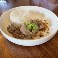 “ I like their mussaman chicken with jasmine rice (150 baht). Had a cold lemon honey drink (90 baht). Tasted good. Good food, great atmosphere, fast service. This used to be Rama VI's palace. Ask them for their recommendations/specialties. Don't think any of the things I ordered are what they're known for. I just come for the tour and a quick bite to eat with a regal ambiance. ”